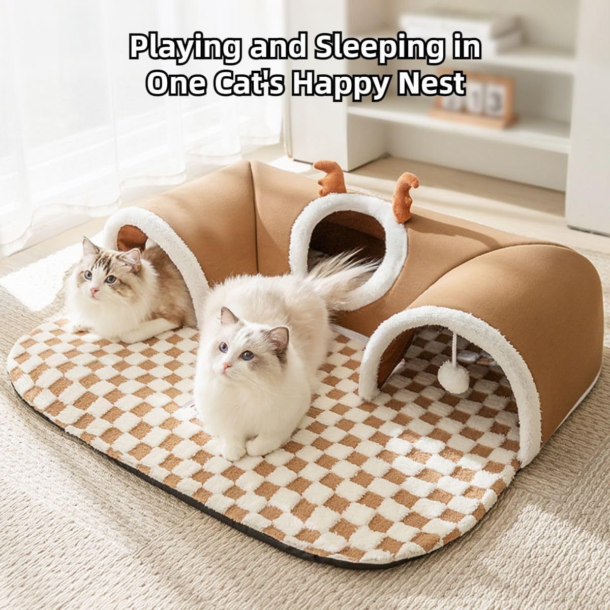 Características destacadas: ✔ Túnel con escondite para juegos interactivos. ✔ Tela duradera y lavable, fácil de mantener limpio. ✔ Diseño amplio para varios gatos o pequeños animales. ✔ Ideal para jugar, descansar y explorar.