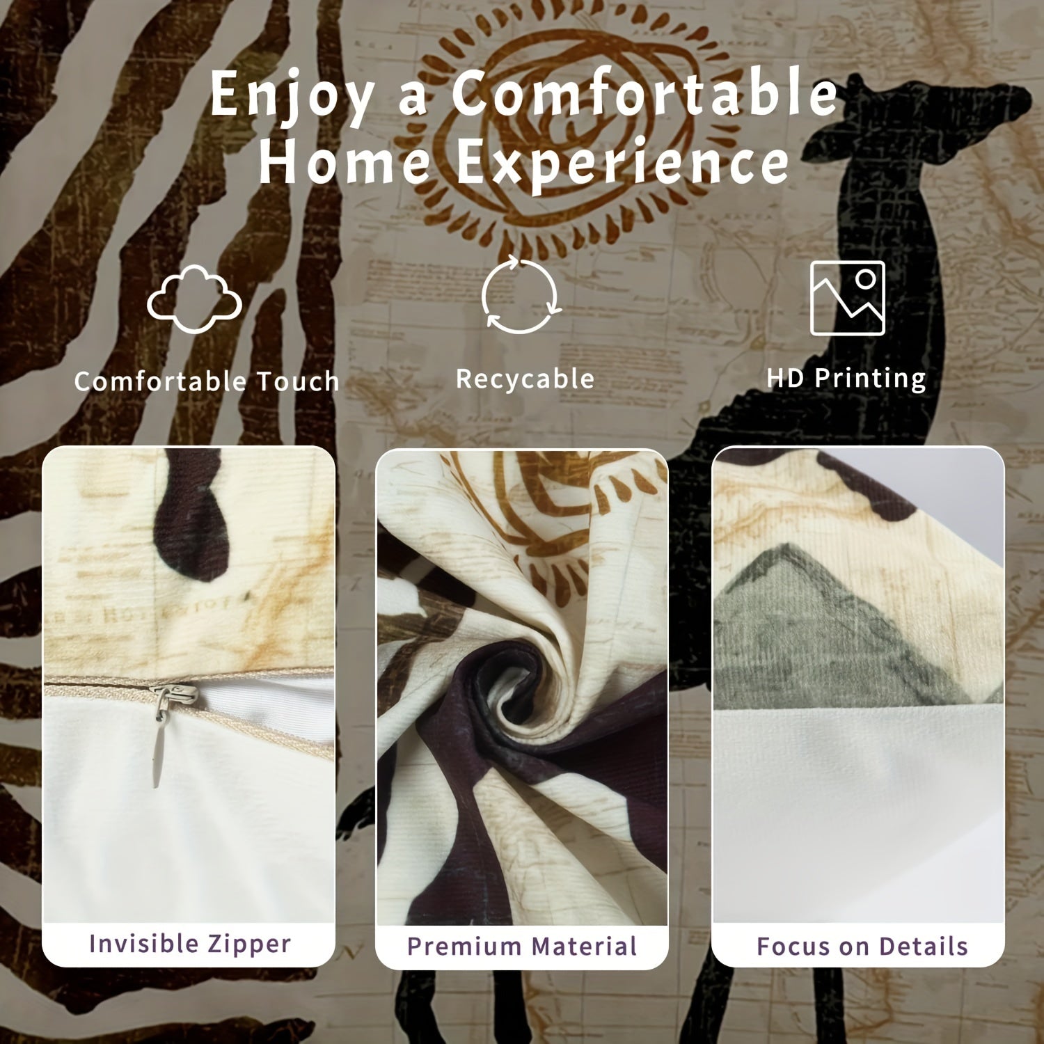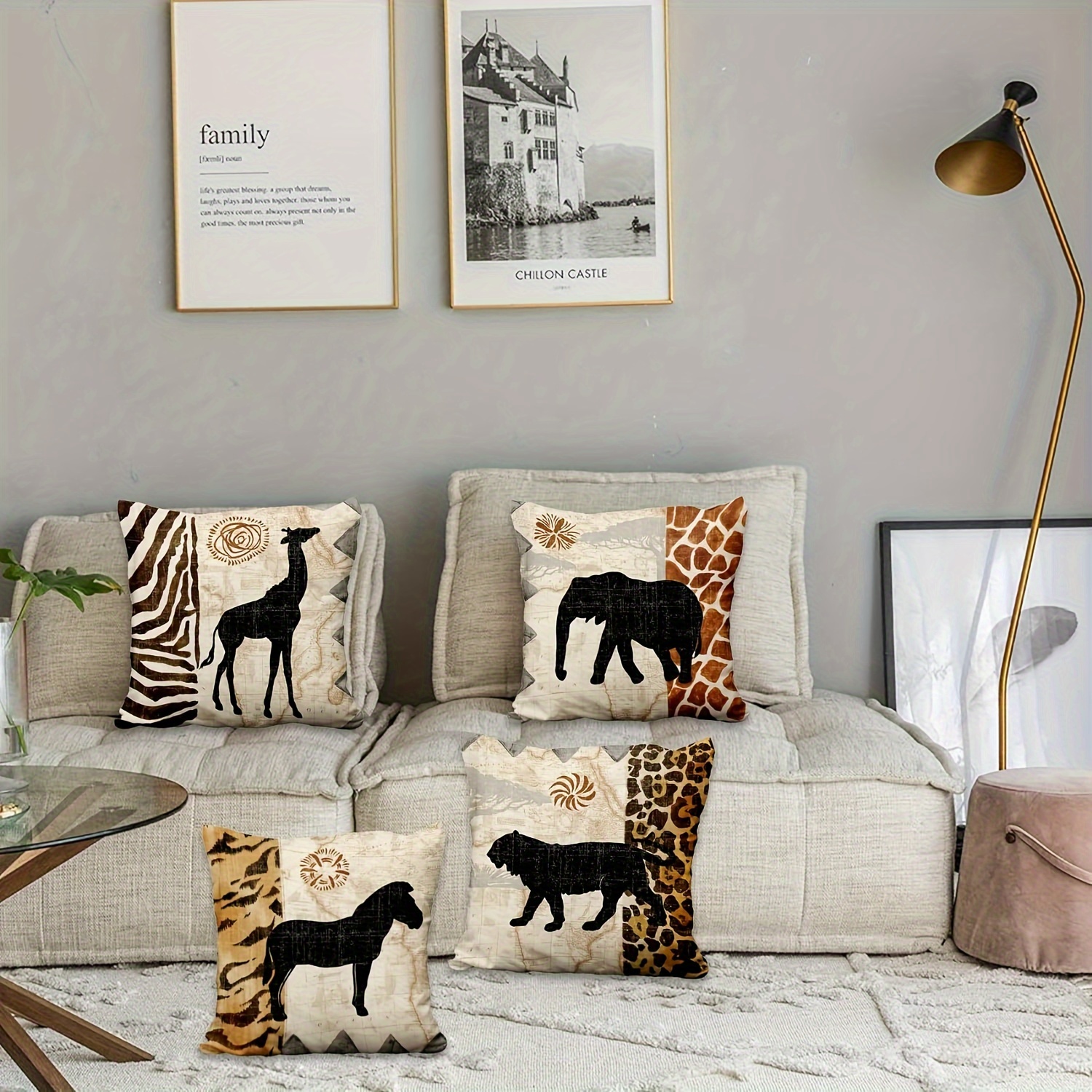 Añade un toque rústico y sofisticado con nuestro set de fundas de almohada con estampado de animales africanos (4 unidades), diseñadas para espacios interiores y exteriores. Con su tejido suave y resistente, son el complemento ideal para cualquier decoración.