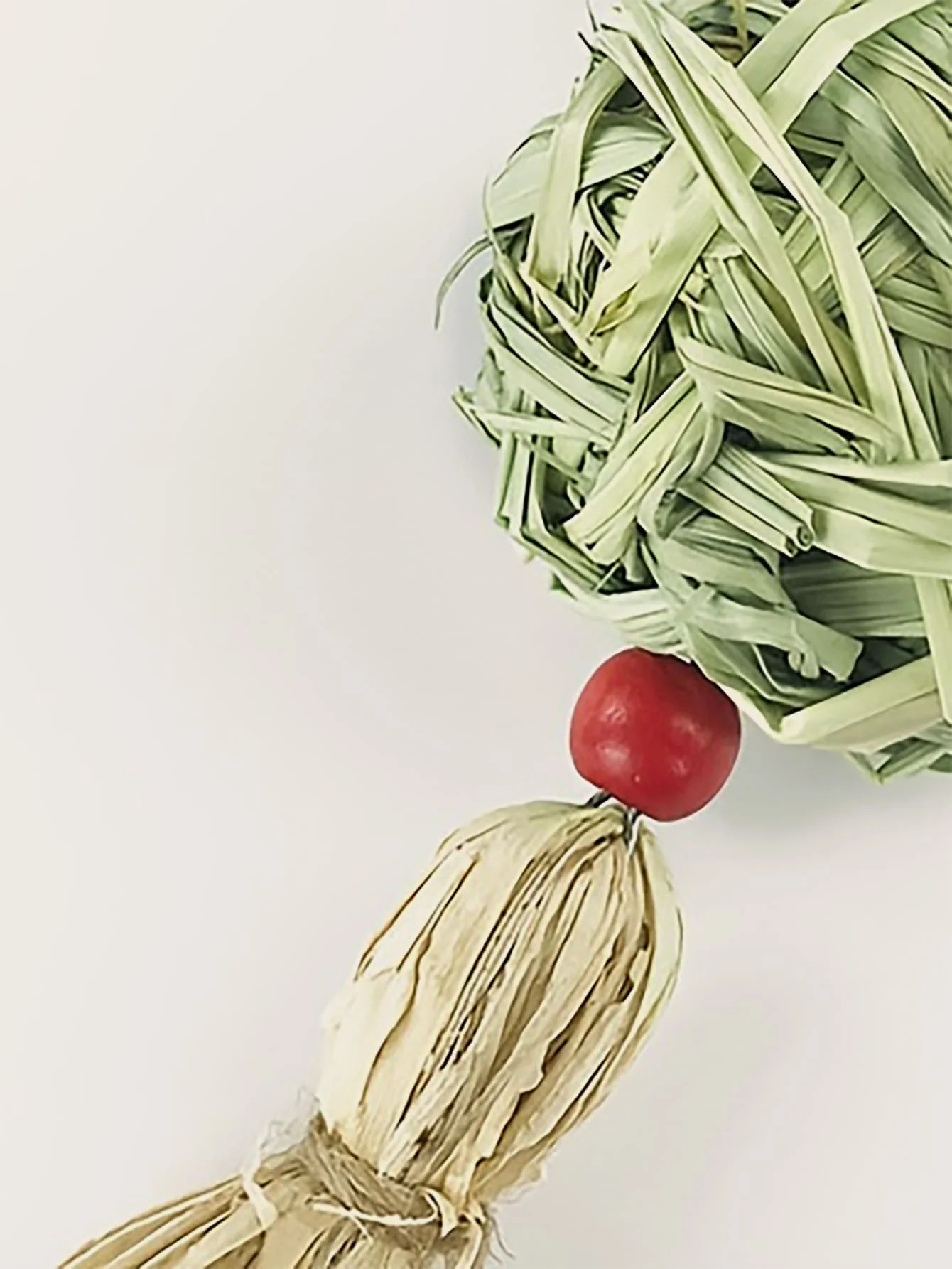 Características destacadas: ✔ Hierba natural tejida a mano, libre de químicos. ✔ Favorece la limpieza dental y el desgaste natural de los dientes. ✔ Cuerda colgante para mayor interacción y diversión. ✔ Seguro y duradero, ideal para pequeños roedores.