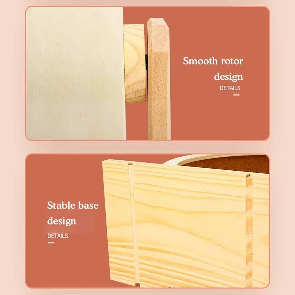 Ofrece a tu hámster una rueda de alta estabilidad con nuestra rueda de madera con soporte y almohadilla de corcho, perfecta para movimiento suave y seguro.